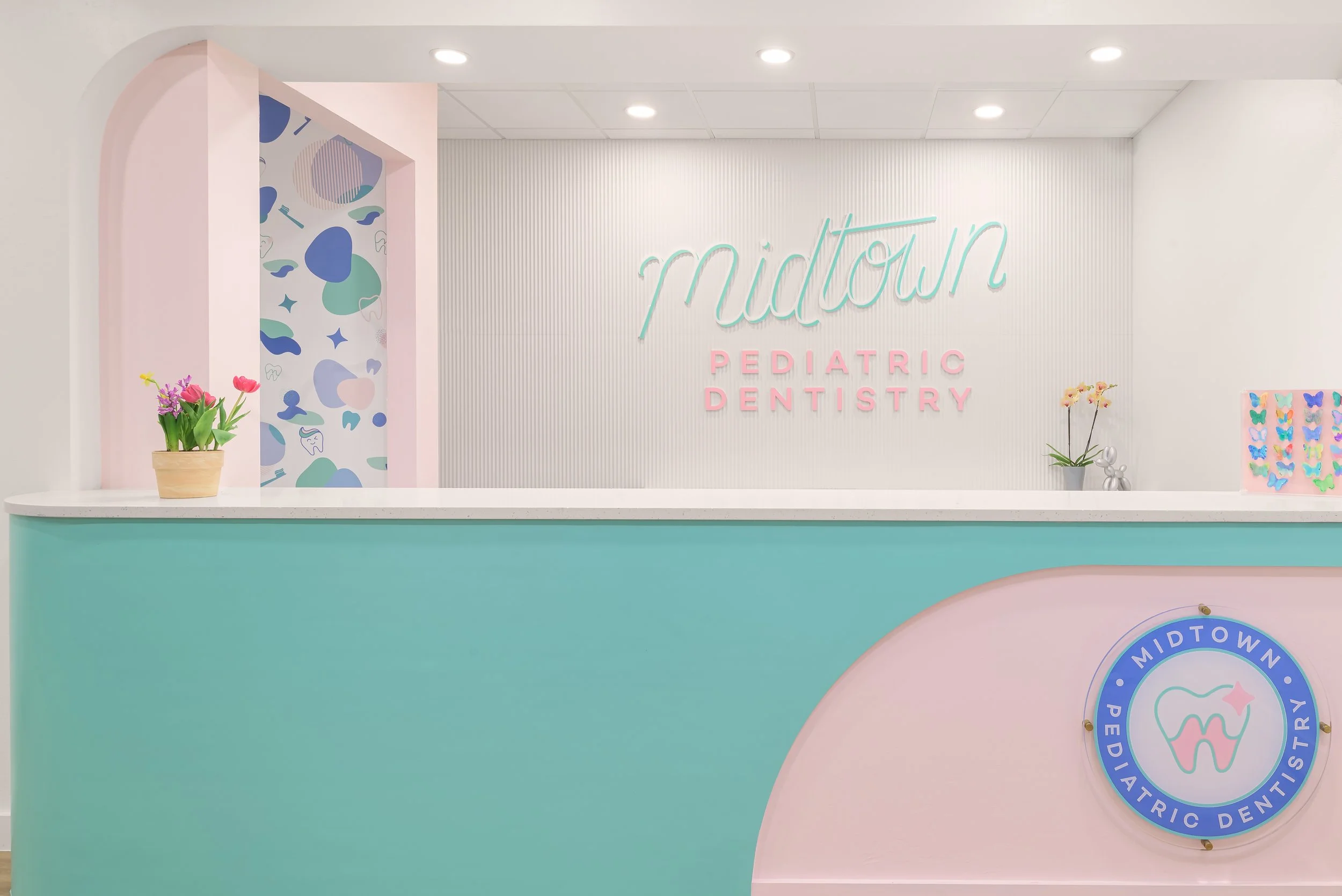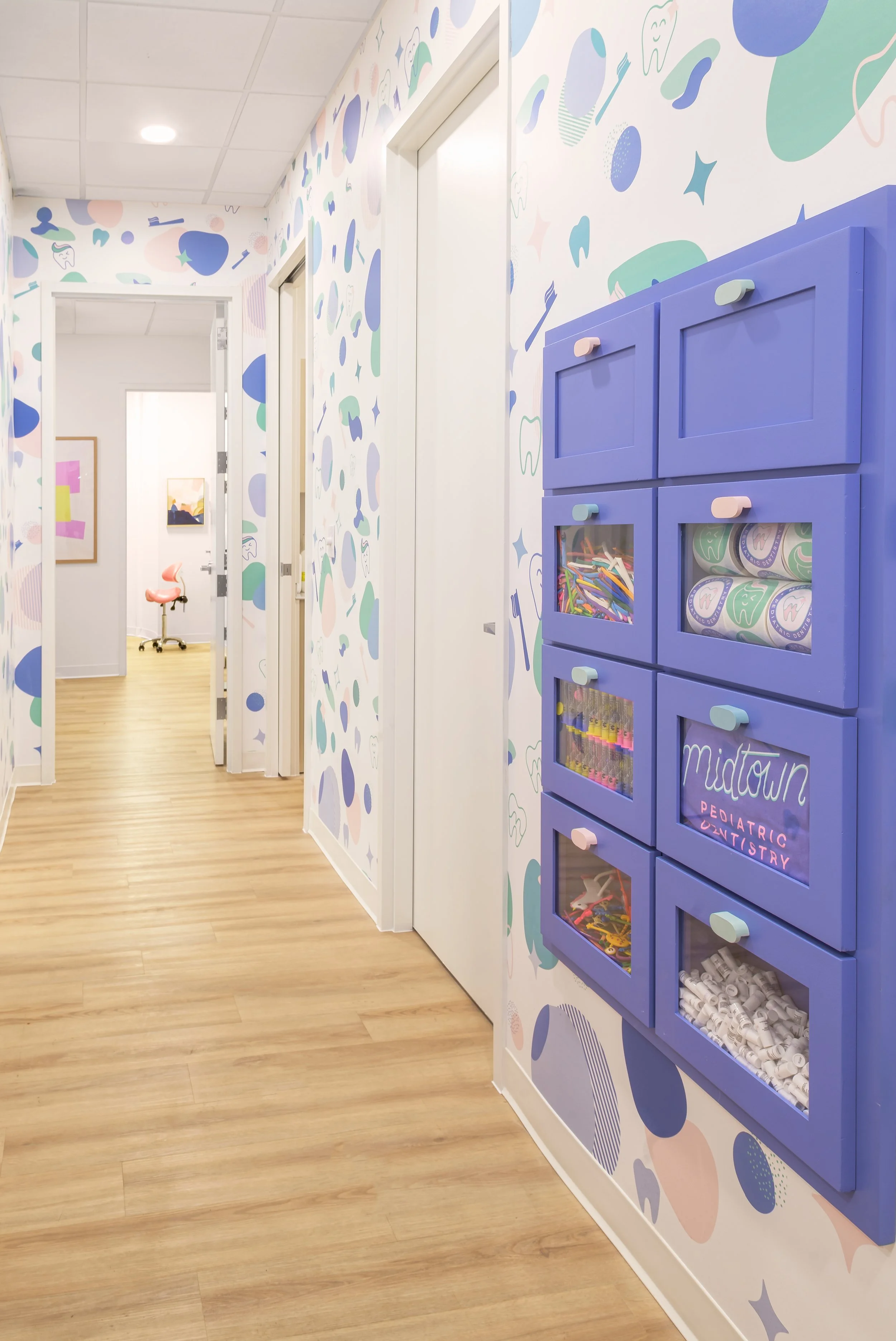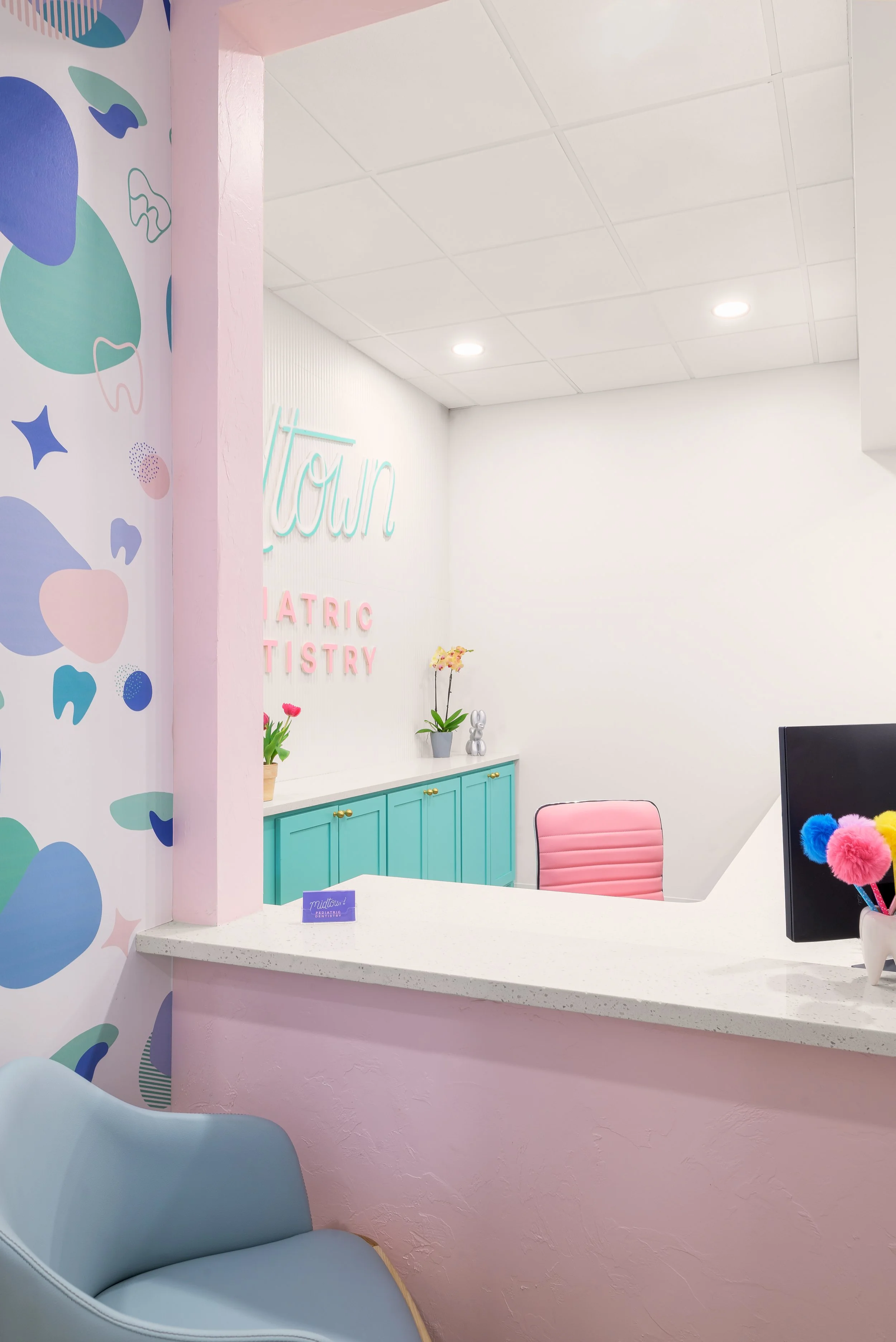 He's a mini Goldendoodle and excited to help our patients enjoy a pawsitive experience while visiting Midtown Pediatric Dentistry. Teddy’s job is to create a fun and comfortable environment. When he's not in his designated office, he'll be on a leash with a trained handler by his side for patients who may feel nervous around dogs.