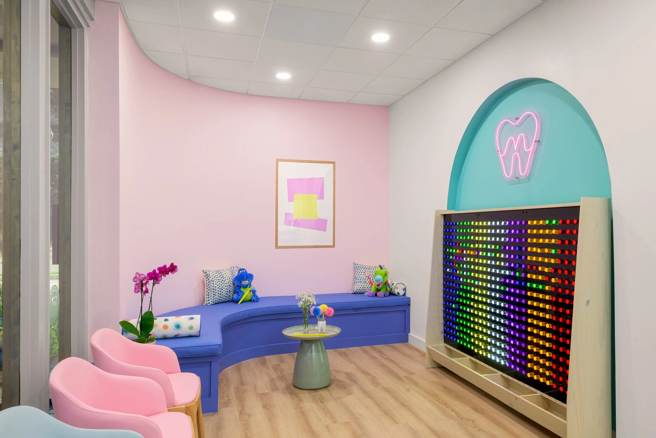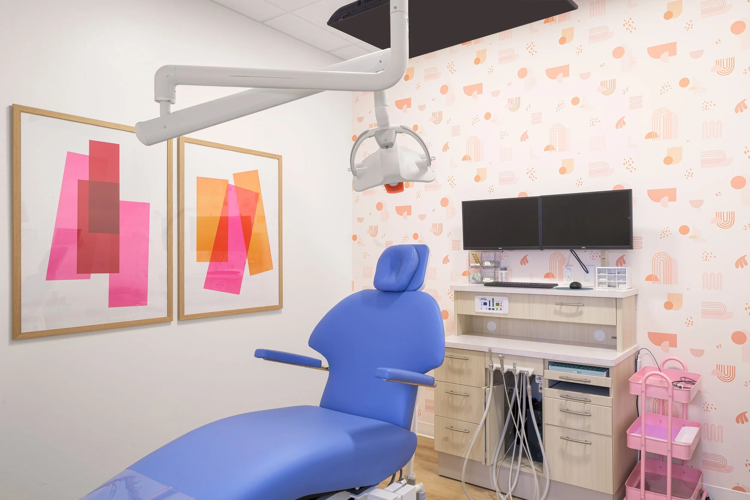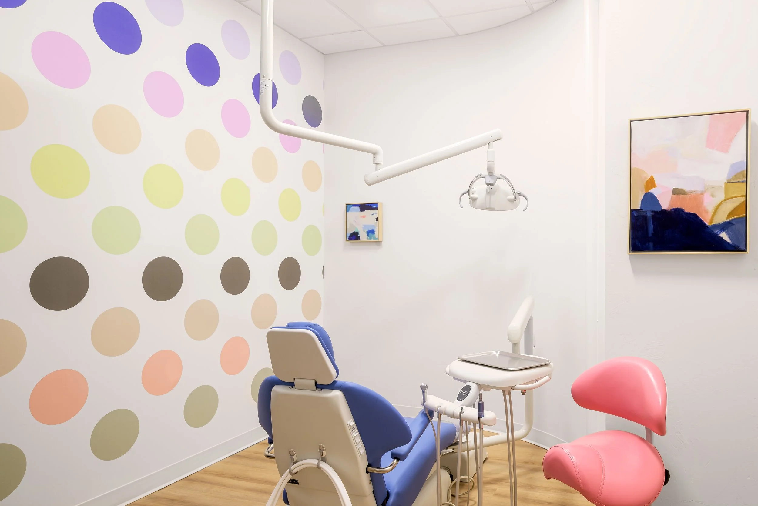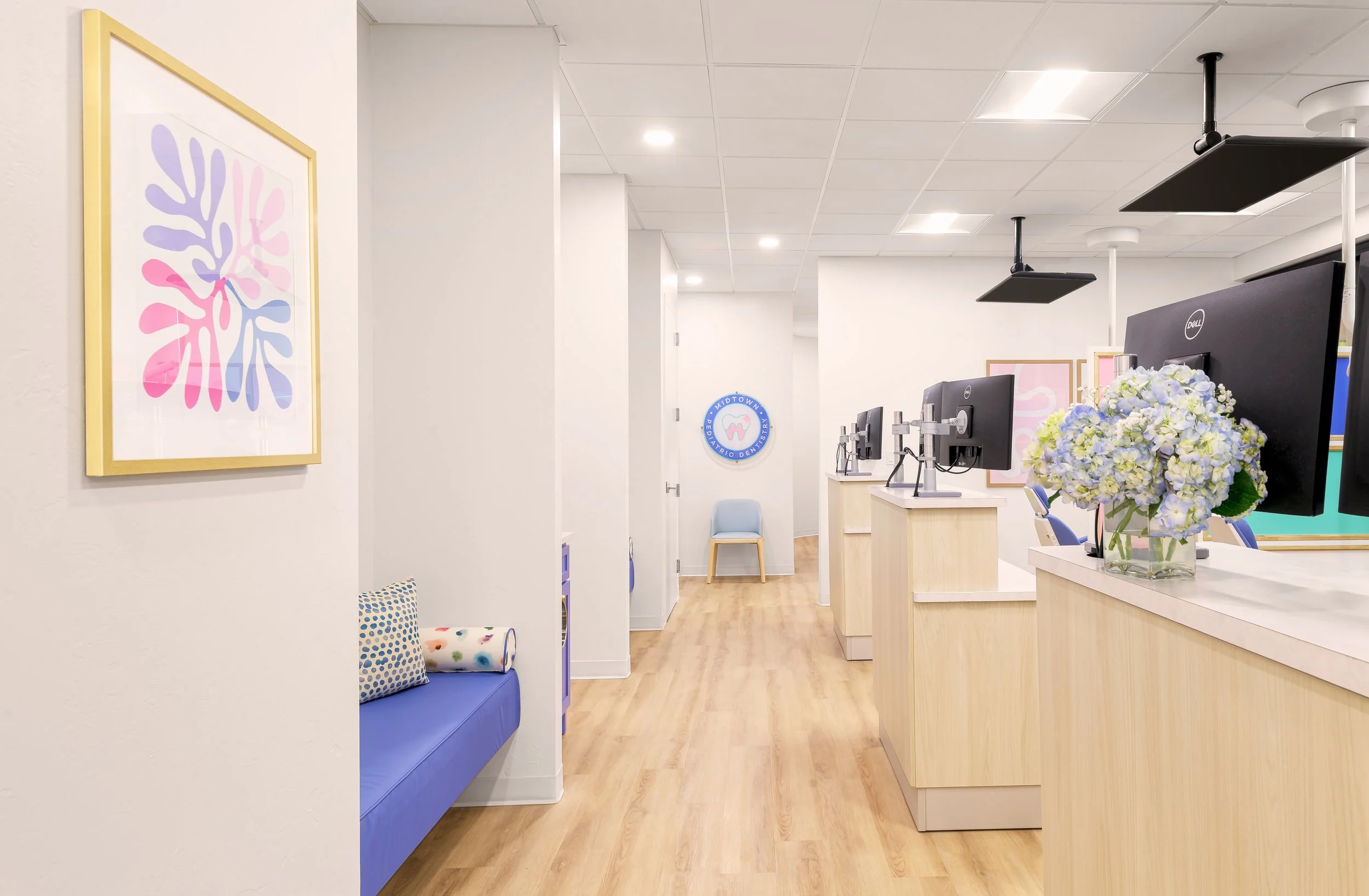 He's a mini Goldendoodle and excited to help our patients enjoy a pawsitive experience while visiting Midtown Pediatric Dentistry. Teddy’s job is to create a fun and comfortable environment. When he's not in his designated office, he'll be on a leash with a trained handler by his side for patients who may feel nervous around dogs.